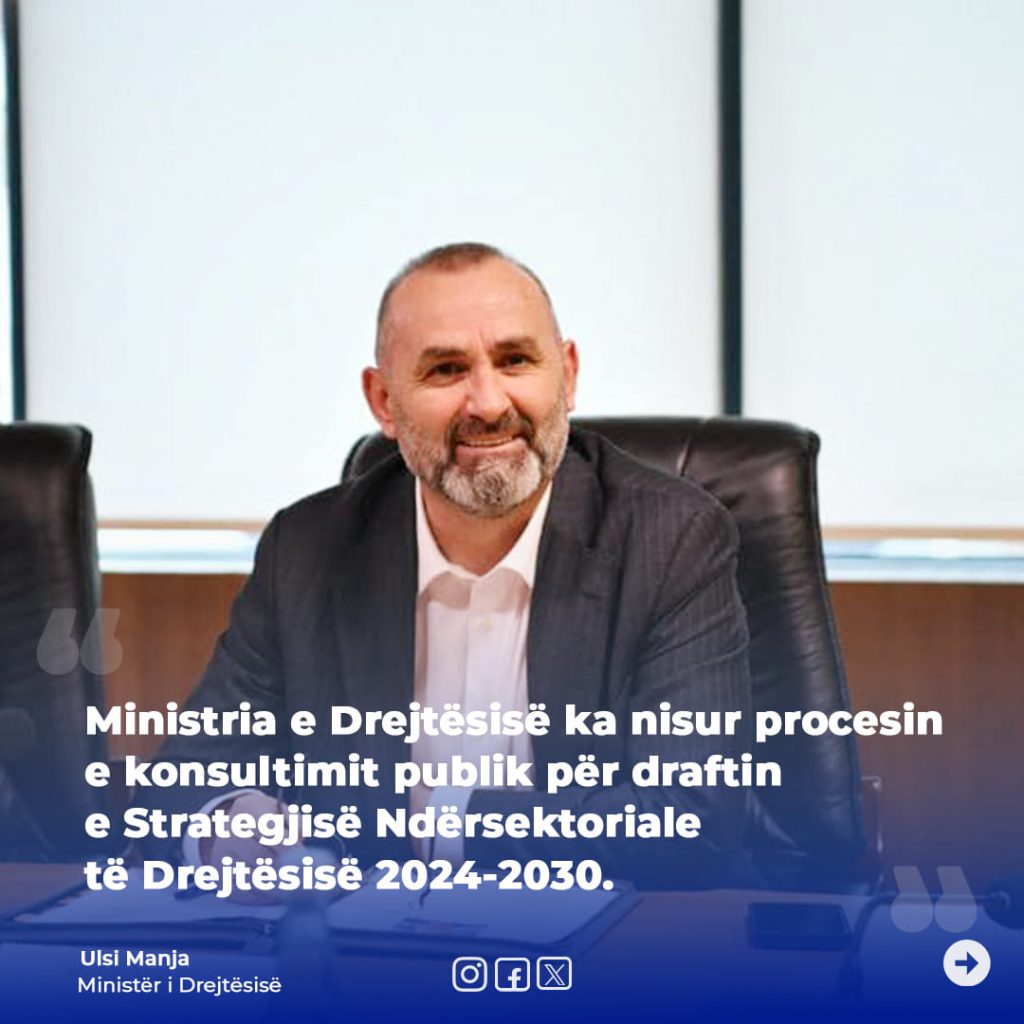 Ministria e Drejtësisë ka nisur procesin e konsultimit publik për draftin e Strategjisë Ndërsektoriale të Drejtësisë 2024-2030.