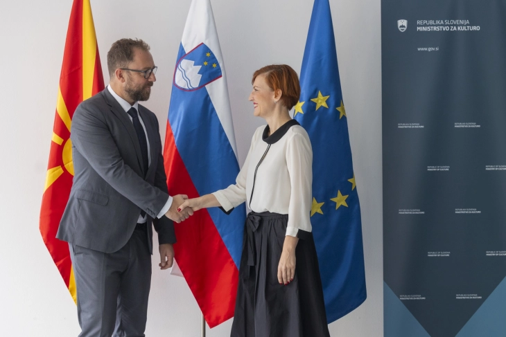 “Duke folur për marrëdhëniet afirmative ndërmjet dy vendeve, ministrja Vreçko e informoi ministrin maqedonas se paradokohe në Slloveni është miratuar një ligj i cili promovon të drejtat e komuniteteve të kombeve të tjera, e me këtë edhe të komunitetit maqedonas, gjë që shfaq shqetësimin për qyetarët e RMV-së që jetojnë në këtë shtet”, thuhet në kumtesën e Ministrisë së Kulturës dhe Turizmit.