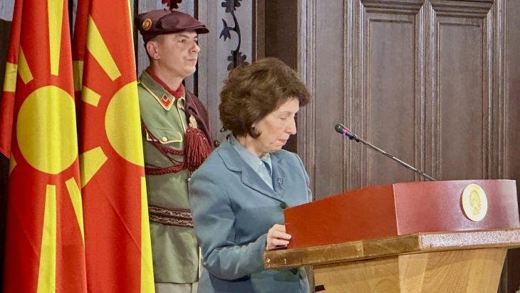 “Çdo brez i ri përballet me sfida të reja dhe duhet të luftojë për këto vlera të larta dhe t’i përvetësojë ato. Çdo gjeneratë e re, përfshirë edhe tonën, duhet të japë sakrificën e vet për lirinë dhe drejtësinë, sepse vetëm sakrifica na bën të vetëdijshëm për vlerën e tyre, ndërsa sakrificën më të madhe duhet ta japin ata që kanë përgjegjësi më të madhe, pra politikanët e zgjedhur nga qytetarët që t’i përfaqësojnë dhe me shembullin e tyre personal të luftojnë për interesat kombëtare dhe shtetërore”, theksoi Siljanovska – Davkova.