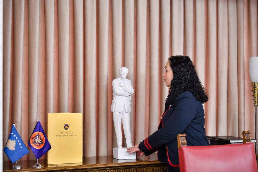 “Me besim të pafund në paqen, dinjitetin, lirinë dhe pavarësinë e popullit tonë, presidenti Rugova hodhi themelet e një Kosove të pavarur, duke formësuar një trashëgimi të rrënjosur në mençurinë, durimin, qëndrueshmërinë dhe vullnetin e pathyeshëm të një kombi. Me urtësinë, me vizionin e një burrështetasi dhe me shpirtin e një patrioti, presidenti Rugova na bashkoi në momentet tona më të vështira, duke frymëzuar brezat për të ecur në rrugën e lirisë, pavarësisë dhe demokracisë. Rrugë nga e cila asnjëherë nuk do të heqim dorë! Falënderoj skulptorin Gëzim Muriqi që sot dhuroi skulpturën e Presidentit historik për Presidencën e Republikës së Kosovës”, ka shkruar Osmani.