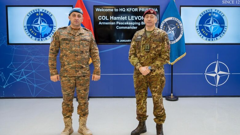 Komandanti i misionit të KFOR-it të udhëhequr nga NATO, Major General Enrico Barduani, takoi Komandantin e Brigadës Armeniane të Paqes, Kolonel Hamlet Levonyan, në selinë e KFOR-it, në Kampin Film City në Prishtinë.