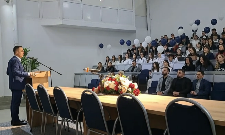 “Sot kemi nderin që këtu në ambientet e shkollës së mesme të mjekësisë të lëshojmë në përdorim edhe një investim të rëndësishëm, që është realizuar bashkë me komunën e Tetovës dhe shkollës së mjekësisë. Fjala është për amfiteatrin e shkollës, si dhe një urë lidhëse që lidh shkollën me sallën sportive. Me këtë do të kontribuojmë që kjo shkollë të krijojaktivitete kulturore sportive e arsimore. Ky është përkushtimi jonë për plotësim të kushteve në arsimin fillor e të mesëm që janë përgjegjësi e komunës së Tetovës”, deklaroi Bilall kasami. Kryetar io komunës së Tetovës.