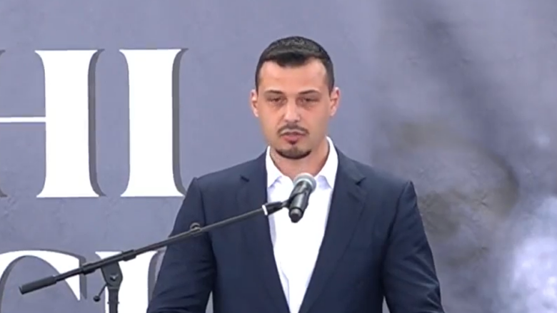 Djali i Hashim Thaçit, Endriti, ka mbajtë një fjalim emocionues në këtë mbledhje komemorative për gjyshin e tij, Haxhi Thaçin.