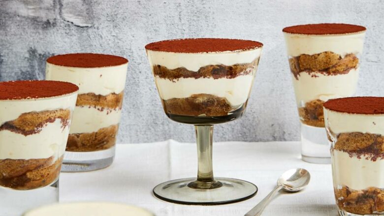 Biskotat njomni në kafe, radhisni në një gotë dhe qitni sipër tretjen.