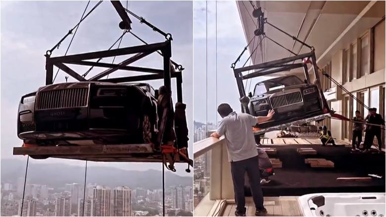 Në një shfaqje të jashtëzakonshme të pasurisë, një miliarder në provincën Fujian të Kinës orkestroi një operacion mbresëlënës për të ngritur Rolls-Royce Ghost në apartamentin e tij në katin e 44-të.
