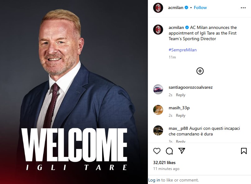 Drejtori i ri sportiv i Rossonerëve, Igli Tare , komentoi: “Të bëhesh pjesë e një klubi si AC Milan është një burim krenarie dhe përgjegjësie të madhe. Falënderoj Klubin që më besoi këtë rol.