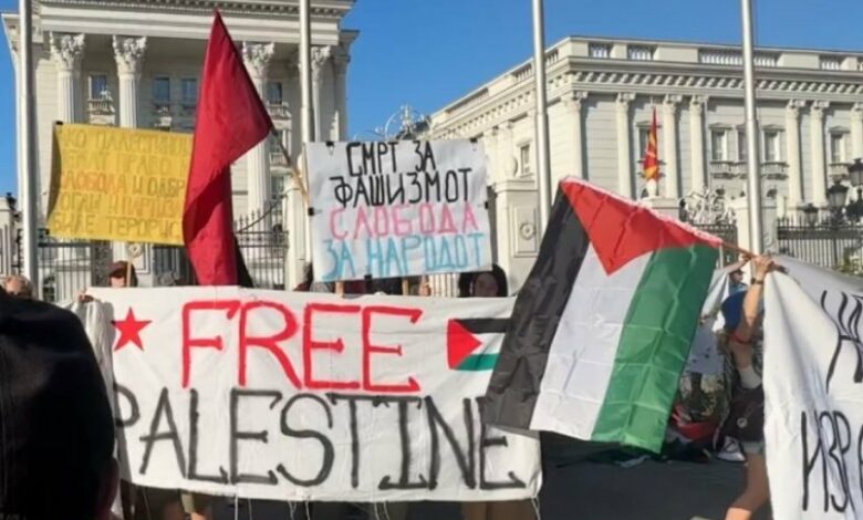 Shkup, 24 qershor – Iniciativa “Të gjithë për Palestinën” nga ora 18 marshoi në formë proteste nga Qeveria deri te Ambasada Amerikane në Shkup.