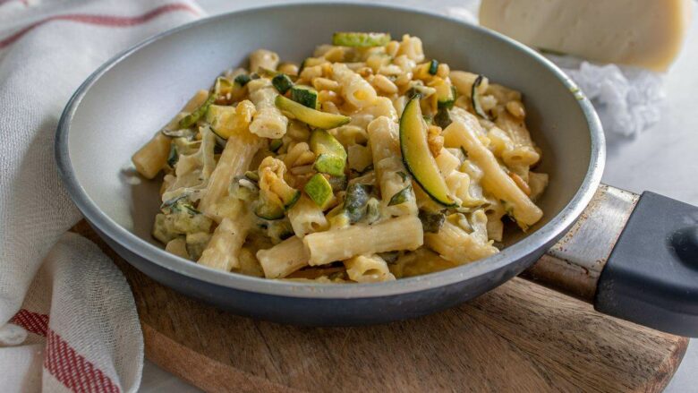 Pasta me kungulleshka, arra dhe djathë krem është një pjatë jashtëzakonisht e lehtë dhe ideale për ditët e nxehta të verës