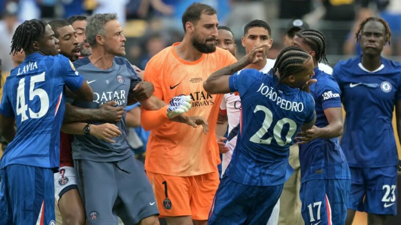 Në finalen e Kupës së Botës për Klube midis PSG dhe Chelsea, pamë skena të pabesueshme në fund të ndeshjes. Roli kryesor ishte për trajnerin e PSG-së, Luis Enrique, i cili sulmoi fizikisht lojtarin e Chelseat, Joao Pedro.
