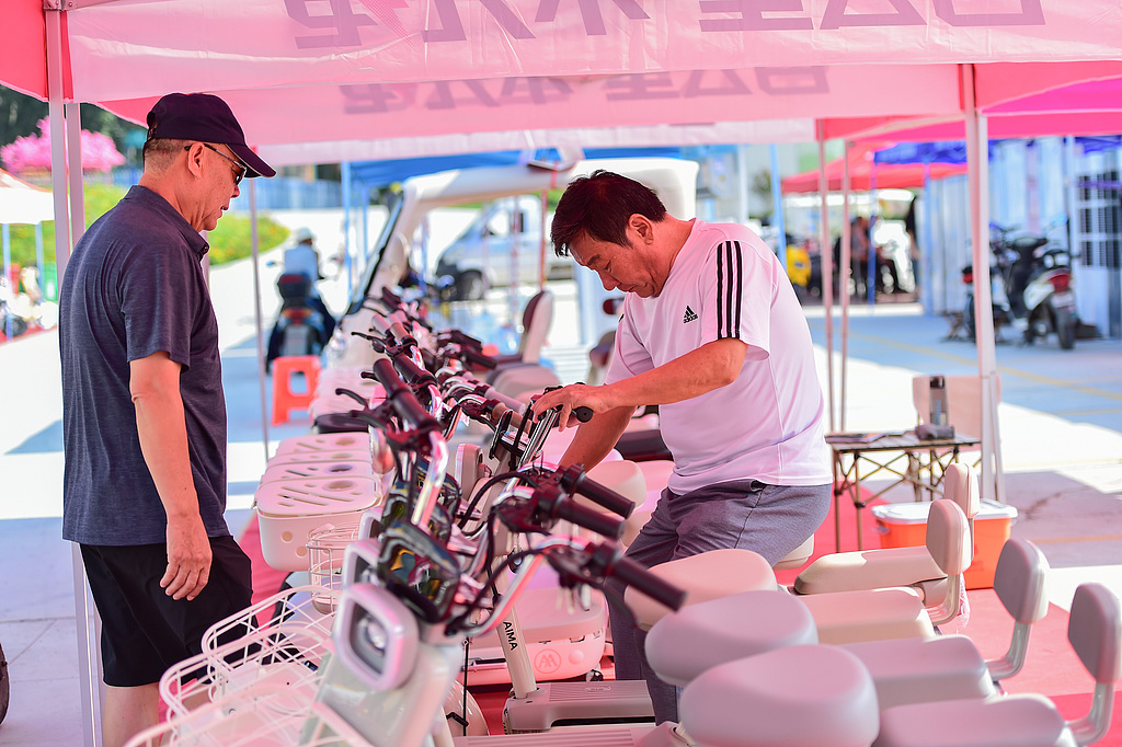 Konsumatorë në një dyqan të shitjes së biçikletave elektrike që përfshihen në politikën e favorshme, qytet Weifang, provincë Shandong, Kinë Lindore, 11 korrik 2025/Foto nga VCG