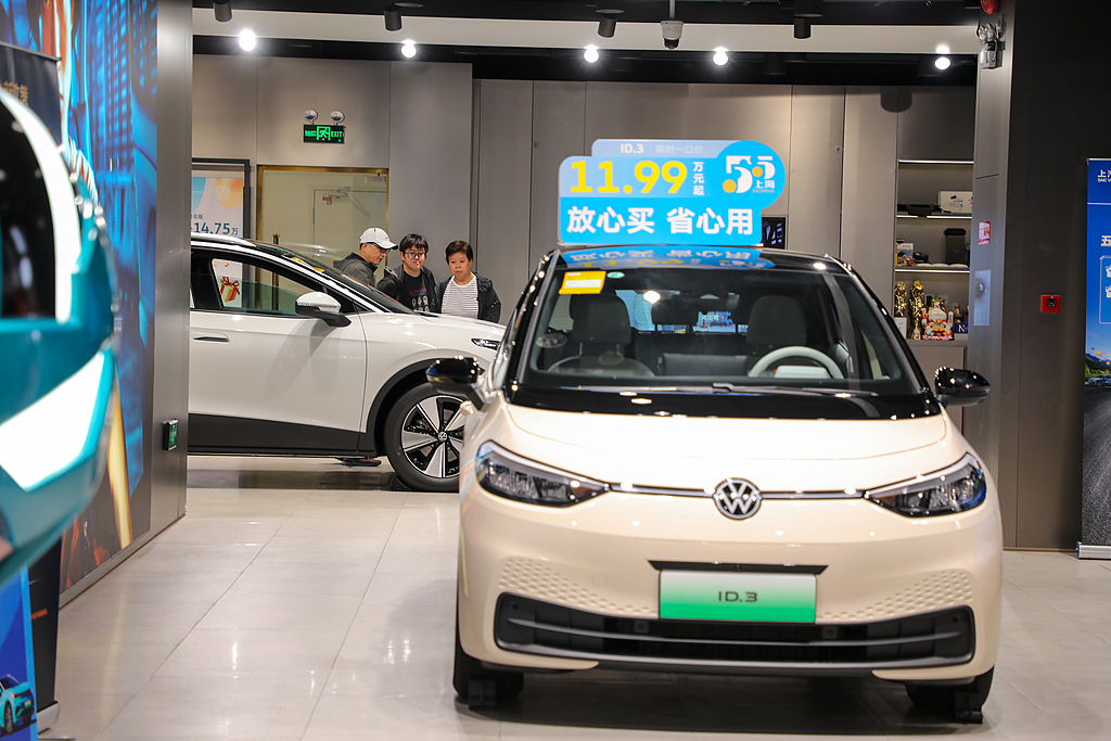 Konsumatorë në një dyqan të shitjes së makinave elektrike që përfshihen në politikën e favorshme, qytet Shangai, Kinë, 31 maj 2025/Foto nga VCG