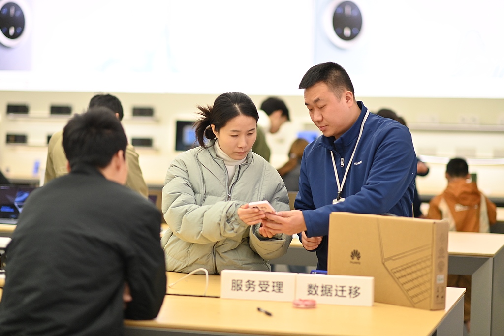 Konsumatorë në një dyqan të shitjes së celularëve që përfshihen në politikën e favorshme, qytet Chongqing, Kinë Jugperëndimore, 29 mars 2025/Foto nga VCG