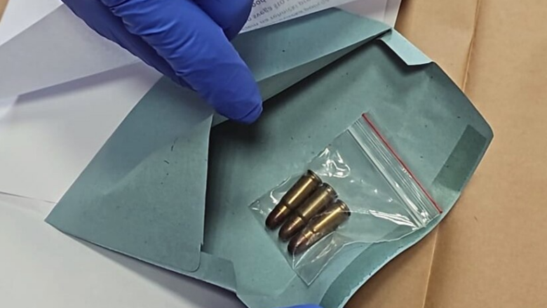 “Gjatë kontrollit të sigurisë me pajisje me rreze X, në zarf u gjetën tre plumba”, thuhet në komunikatën e MUP-it, shkruan Radio Evropa e Lirë.