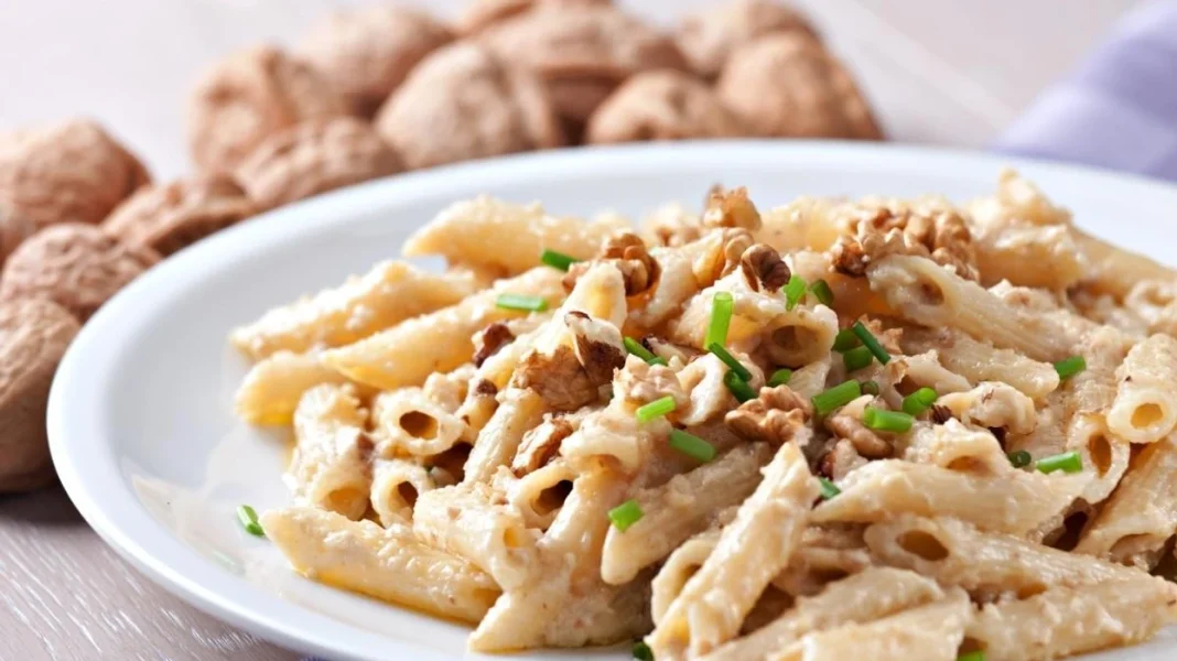 Makarona me salcë pesto të bardhë dhe arra